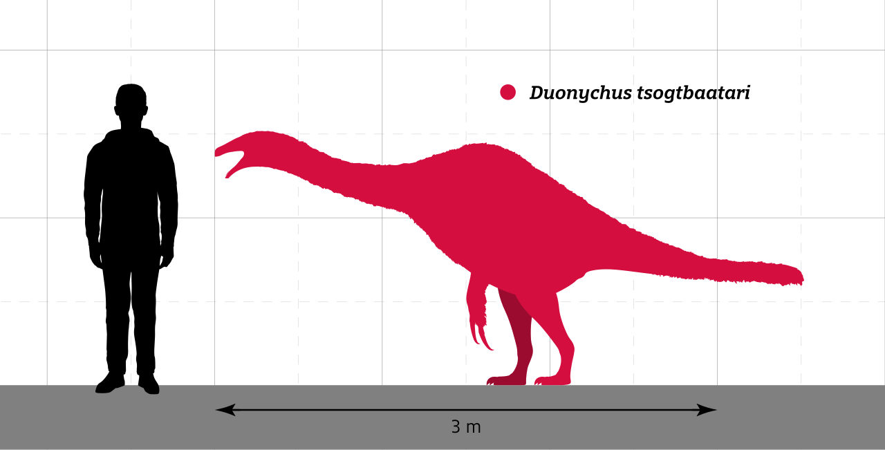 The name Duonychus combines the Greek words for “two” and “claw,” referencing the animal’s unusual two-fingered hand. The species honors Khishigjav Tsogtbaatar, a respected Mongolian paleontologist and former director at the Institute of Paleontology in Ulaanbaatar.
